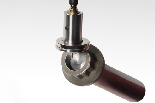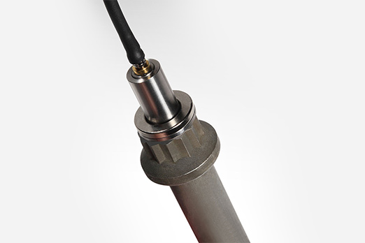 After quick assembly, a magnetic pickup unit is placed on the sensor, while a cable connects it to the MC900 ultrasonic measurement unit. The sensor boasts permanent mounting, but can be removed with shear force. UTensor II is not reusable.